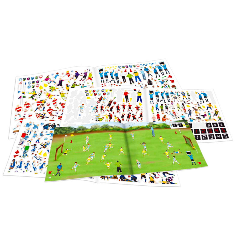 Alineación, táctica, espíritu de equipo: 16 páginas con campos y estadios de fútbol, más 6 páginas de pegatinas para crear partidos de fútbol únicos. Edad recomendada: 4.
